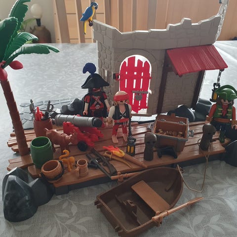 Playmobil skatteø. Godt brugt. Et par ting er knækket af, men der er både bygninger, figurer, dyr osv med