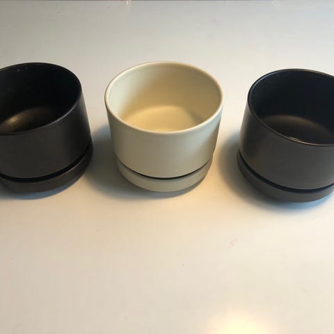 2 stk. brune og 1 stk. beige. Alle med underskål. D: 13 cm. H: 10 cm.
