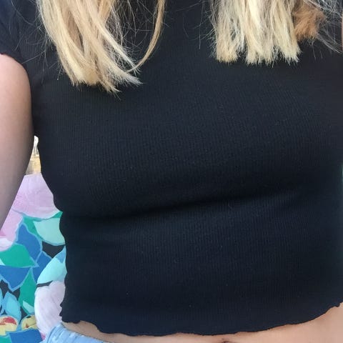 H&M Divided T-shirt til damer i størrelse S. T-shirten er sort og lavet af polyester. Den har en kort ærmelængde og en dyb V-hals.