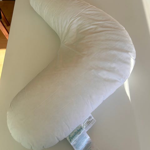 Betræk følger med. Ammepude 114 x 70 cm 70% fossflakes essentiel og 30% polyester. Case 100% cotton 720 g.