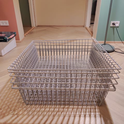 10 hylder 56 x 58 sælges til 10 kr. per styk. 1 hylde 116 x 57 cm.