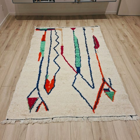 SENDER GERNE.. Ægte Marokkansk Beni Ouarain tæppe / løber i 100% uld 🐑. Dejlig blødt og tykt kvalitet. Har også andre Beni tæpper til salg. Sjældent størrelse måler ca 100×500 cm.