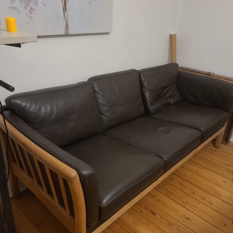 Har brugspor her og der, men det er en super fed sofa der kan shines om med læderfedt.