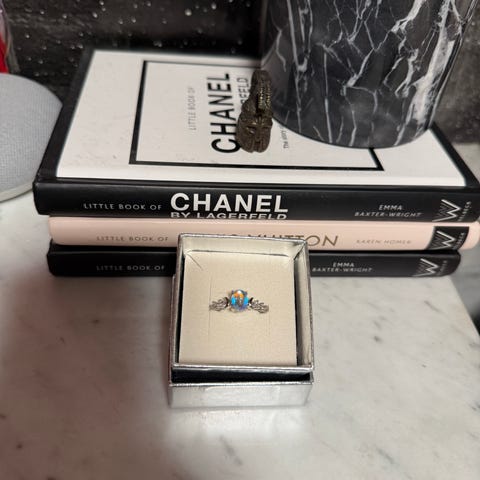 Forgyldt ring med lilla sten.