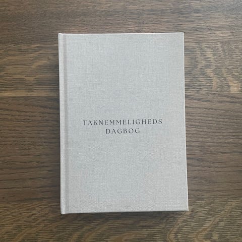 Taknemmlighedsdagbog, af Jane Kudsk og Cathrine Hougaard Sørensen. Med plads til noter ved morgenintention og aftenrefleksion.