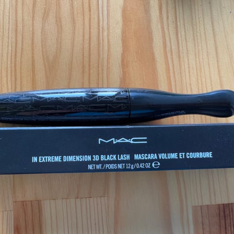 MAC Extended Play Gigablack Lash Mascara i sort farve. Produktet leveres i en blå beholder med sort emballage. Mascaraen er designet til at give intens længde og definition til øjenvipperne.