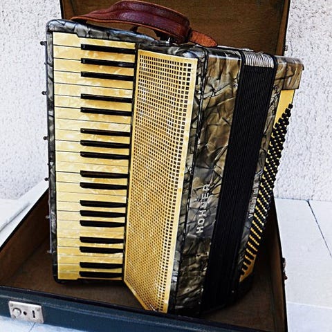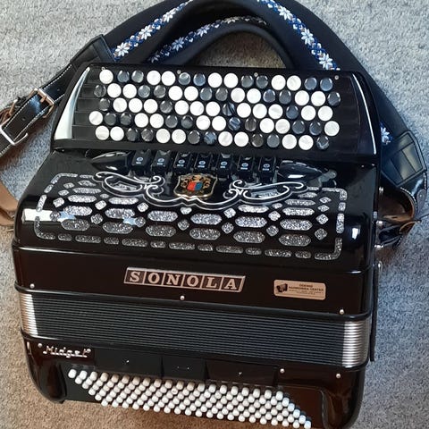 Kromatisk knapakkordeon (C-system), lavet i Italien.