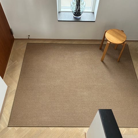Virkelig et pænt beige gulvtæppe. Det er ikke brugt og har ikke brugsspor. Det har ligget under et andet tæppe hele tiden.