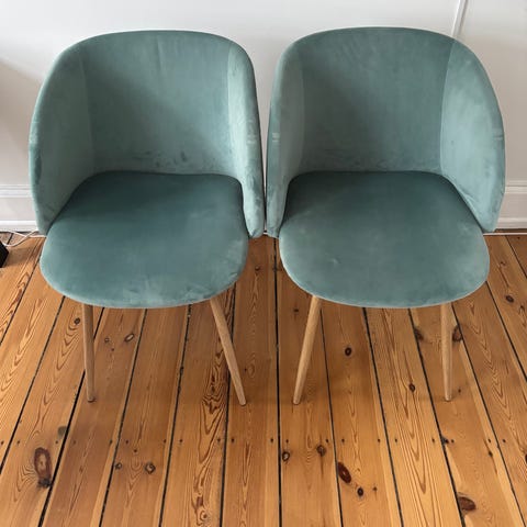 Meget behagelige stole, kan bruget til værelset eller rundt om spisebordet. Sælges helst samlet.