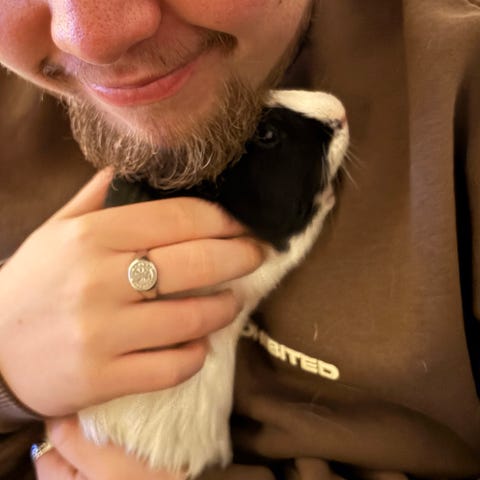 Jeg sælger dette lille søde marsvin til kun 150 kr. han er super nysgerrig,livlig og tam. Han elsker at blive nusset med. Og kan nemt enes med andre marsvin. Dog skal det siges at man ikke kan købe ham unden han får en eller flere venner at gå med, nu hvor de er flok dyr. Han blev født den 28 november, og er klar til at flytte fra reden. Jeg bor i Silkeborg, men kan godt levere for betaling. Hvis du finder intresse i ham må du meget gerne skrive en pb til mig.