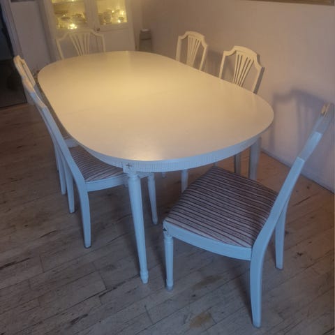 Gustaviansk spisebord med 4 stole