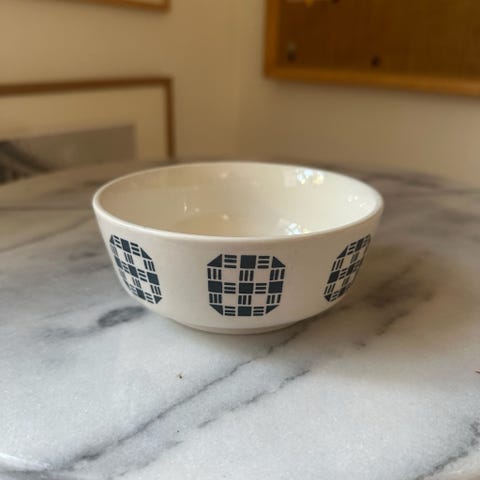 Retro vintage skål med motiv af æbler roer radisser eller andre frugter ? Har brugsspor, se fotos (let krakelering og små afslag). Diameter 16 cm og højde 6,5 cm. Ukendt mærke.