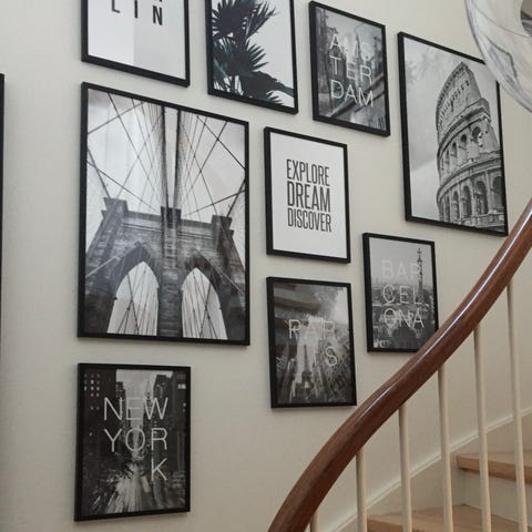 Flot billedvæg med plakater og sorte rammer fra Desenio.