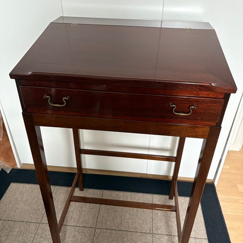 Har stået hos familien i omtrent 30- 35 år. Søger nyt hjem. Har et mørkt Mahogni finish. Skal ses og hentes i Dalby. Lad høre et par dage i forvejen hvis interesse.