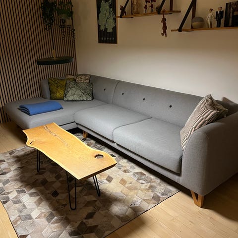 Flot sofa med chaiselong fra Sofacompany i lys grå uld. 4 år gammel. Sælges pga flytning, da vi ikke har plads i den nye stue.