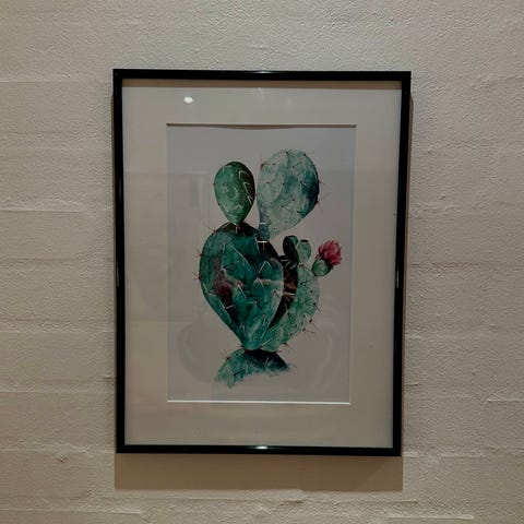 Fin sort/hvis plakat med kaktus inklusiv sort ramme.