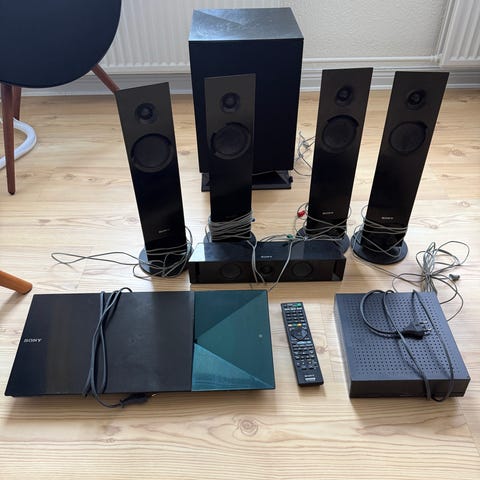 Super god kvalitet 5.1 Hjemmebiograf surround anlæg. Kraftig lyd i alt 1200 watt lyd effekt.