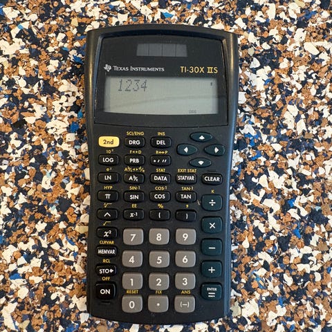 Texas Instruments TI-1796SV lommeregner i beige farve. En simpel elektronisk lommeregner med standardfunktioner og en digital skærm. Velegnet til grundlæggende beregninger.