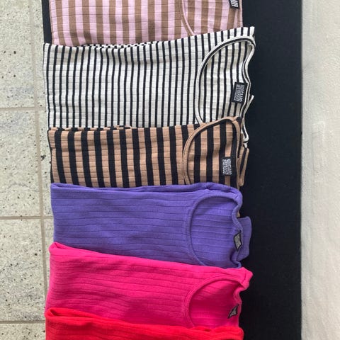 Red, syren (lilla), chock (pink), red/ercu, tie dye klein
