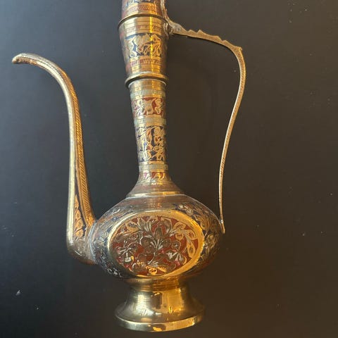 Virkelig smuk og virkelig gammel og antik Alladin-kande i messing.