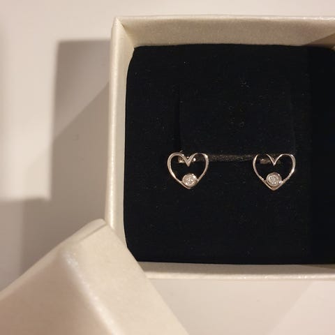 Super Flot Hvid Guld Hearts Ørestikker fra Nordly i 14 karat og facetslebne hvide zirkoner. ! Med æske ! NY!