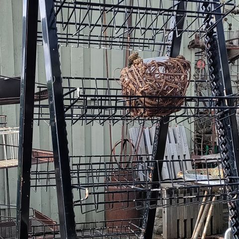 Klassisk svensk retro garderobe/bagage hylde i mørkebrunt metal...