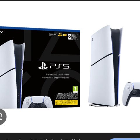 Sony Playstation 5 spillekonsol med hvidt og sort design. Konsollen er til brug og sort ps 5 controller