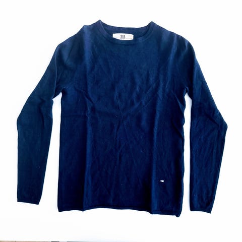 Lækker blød marineblå trøje i str. 146/152 (10-12 år). Som ny!