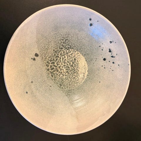 håndlavet keramikfad,blå glasur 23x25 cm