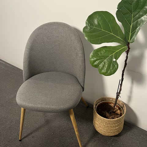 Grå stofstol med sorte metalben