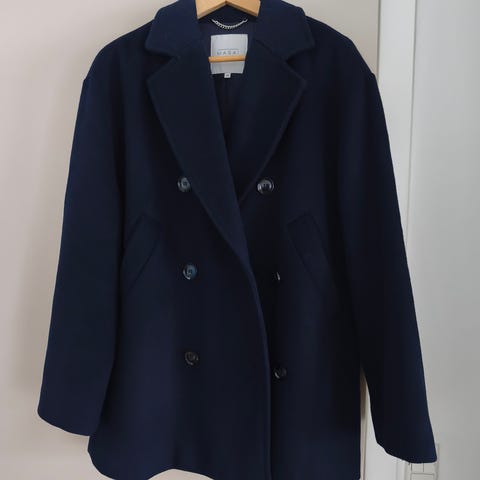 udendørstøj i blå farve, størrelse XL til kvinder. Fremstillet af polyester material og plys Jakken har en foret inderside med pelslignende stof, lynlås og knaplukning samt hætte.