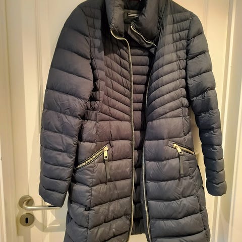 Tommy Hilfiger vinterfrakke i mørkeblå. Fremstillet i bomuld og polyamid. Frakken har hætte, lommer og justerbar talje