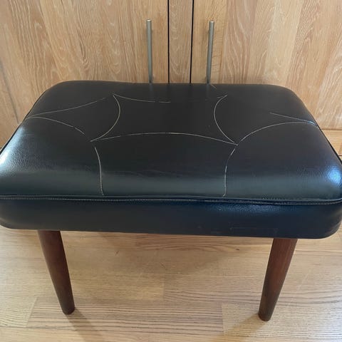 Gammel teak med læder skammel - meget velholdt.