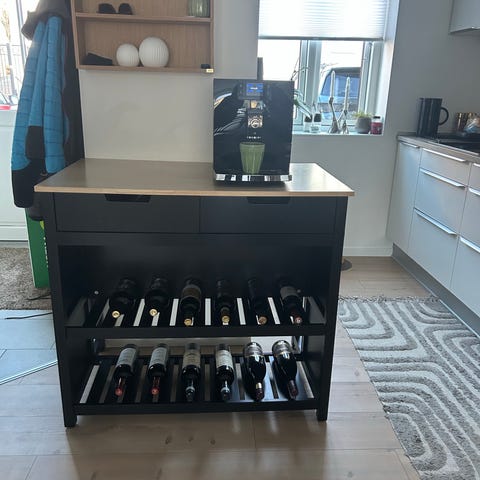 Køkkenø med indbygget reol fra IKEA. Sælges med 2 tilhørende barstole.