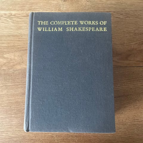 Bogen med titlen; "The Complete Illustrated Works of William Shakespeare",