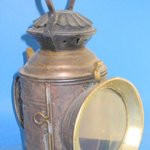Meget fin antik hængelanterne i farvet glas med messing-ophæng