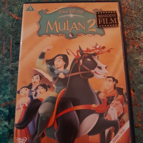 Disney Mulan 2 DVD med fransk tekst. Filmen fortsætter historien om Mulan og hendes eventyr. DVD'en indeholder ekstra funktioner og er i standard DVD-format. Dvd