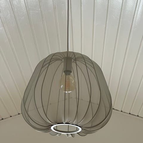 Det elegante og transparente stof, giver Balloon lampen et let, legende udtryk og reflekterer på fineste vis lyset på en nærmest hypnotisk måde. Ned langs Balloon snor sirlige, håndsyede detaljer sig - detaljer, der har krævet en særlig teknik og en særdeles rolig hånd.