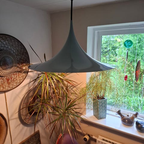 Den emaljerede metalskærm giver et blødt og ensartet lys, ideelt over spise- eller køkkenbord.