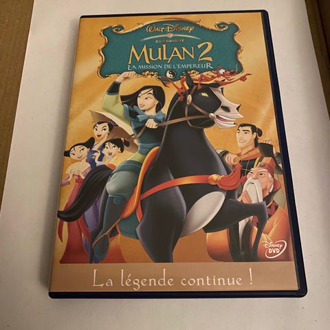 Walt Disney Mulan DVD med filmens cover og bagside. Indeholder filmen Mulan i DVD-format. Ikke på Dansk. Dvd