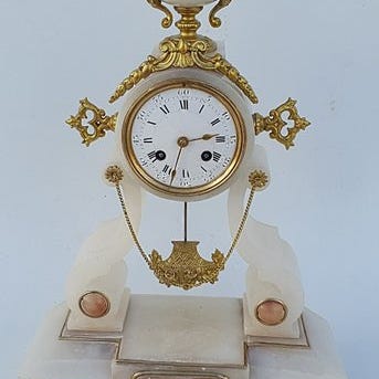 Uret har en figurativ scene med to figurer fra det 18. århundrede, der indrammer urskiven: