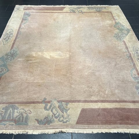 For at komme ind i vores lager, er det blevet renset på et vaskeri, der er specialiseret i håndknyttede tæpper, og er derefter ikke længere brugt.