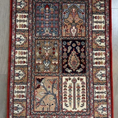 Et ægte persisk tæppe eller orientalsk tæppe som Ghom (også kaldet Ghoum eller Qum) betragtes som indbegrebet af elegance og kunstnerisk ambition. Designet er kendetegnet ved sine ekstremt detaljerede mønstre, der ofte viser blomstermotiver, livstræer eller fine jagtscener og medailloner. I Persiens tradition står Ghom-designet for den højeste luksus og en enestående tegnerisk præcision, som her er blevet mesterligt fortolket.