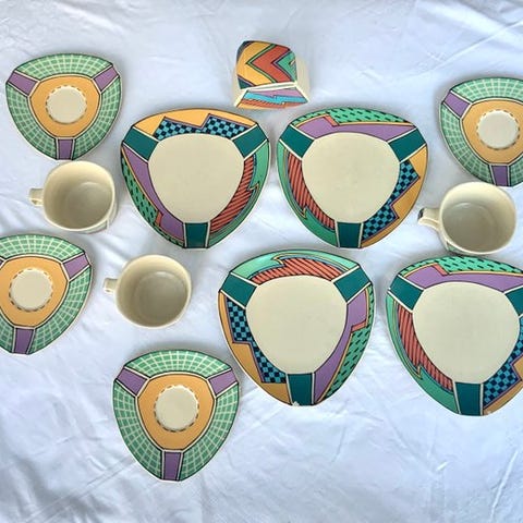 7-delt teservice fra Rosenthal. Postmoderne design af Mario Bellini fra 1980'erne med klare grafiske former.