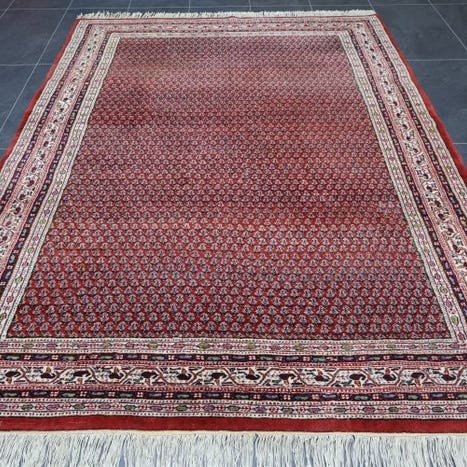 Dette højkvalitets håndknyttede Saruk-tæppe stammer fra Indien.
