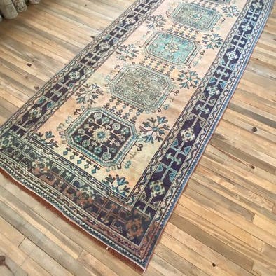 Håndvævet, rengjort kaukasisk tæppe løber fra Tyrkiet.