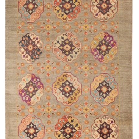 Denne nye Ziegler-Kazak overbeviser med den typiske kaukasiske geometri med tre kraftfulde medaillons, klart opdelte bånd og en livlig, men alligevel afbalanceret farvepalette. Det varme røde felt harmonerer fremragende med creme-, blå- og grønne nuancer. Det højkvalitets uld, den friske knytning og den klare kontur gør dette tæppe ideelt til både moderne og klassiske