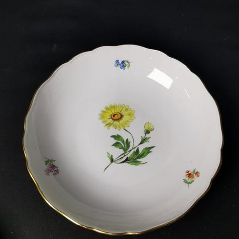 Velkommen! Vi præsenterer et ovalfad med gult rosa mønster fra Meissen fra det 20. århundrede.