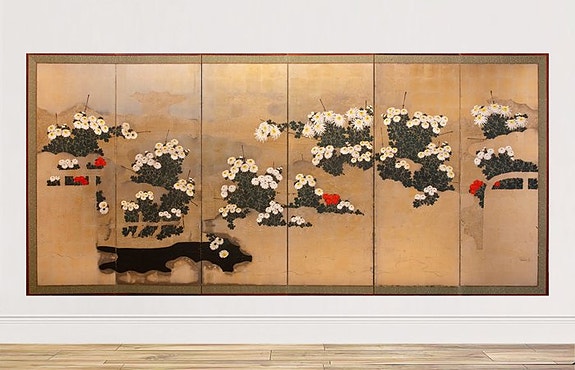 Det frodige, bugtede løv udvikler sig til lodrette grene, der fletter sig sammen i en regelmæssig rytme og skaber et tæt, harmonisk mønster.