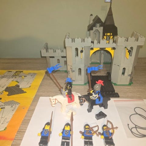 Lego Knight's Castle sæt 6073, brugt, komplet med instruktioner, figurer og trykte dele, uden misfarvning. Klik på den blå "gå til varen" knap, for at købe eller byde på denne vare. Den samlede pris vil blive vist inden du afgiver dit bud.